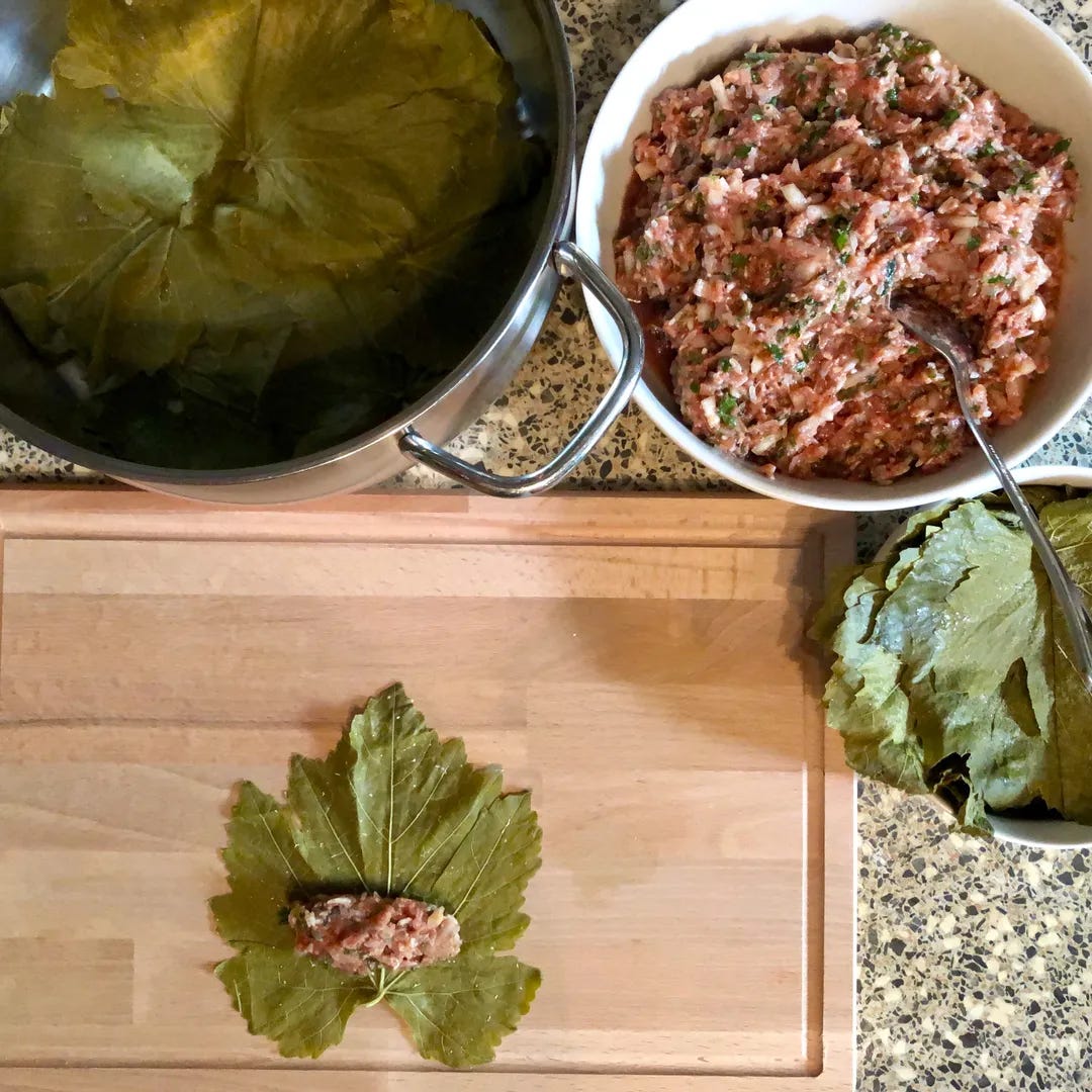 Se trata del Tolma. Sí, Tolma con T, no con D. Tolma es la palabra que deriva del armenio տոլմա y hace referencia a las hojas de parra, el ingrediente que marca la identidad del plato. En cambio, Dolma, con D, significa relleno en turco. Este nombre generalista, es una de las pistas más fidedignas que tienen los académicos para afirmar que la elaboración del Tolma, encuentra sus raíces en Armenia.